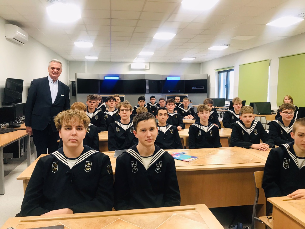 W piątek 28.11.2025 roku zaszczycił nas kurtuazyjną wizytą Przyjaciel Morskiej – Dyrektor "Trzynastka" XIII LO w Krakowie im. Bohaterów Westerplatte Pan Jerzy Niedenthal.