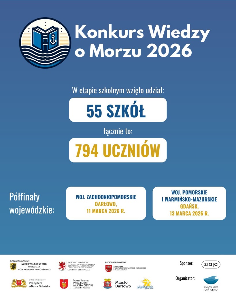 Już w ten piątek 13.03.2026 w naszej szkole wojewódzkie półfinały Konkursu Wiedzy o Morzu 2026